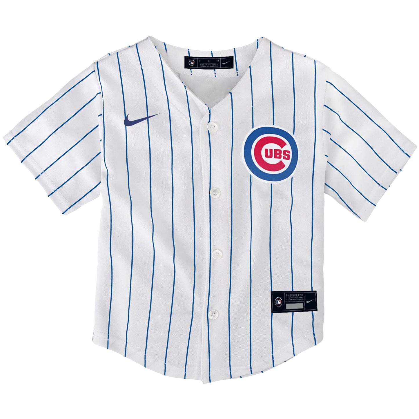 Your youngster will be well on their way toward becoming a loyal Chicago Cubs fan when they have this Pinstripe Home Replica Team Jersey from Nike. Modeled after the players' on-field looks, this jersey will be a perfect introduction to the Chicago Cubs and the world of baseball. It features a full-button front and fits comfortably against your kiddo's torso so that they can enjoy the game with the rest of the family.
