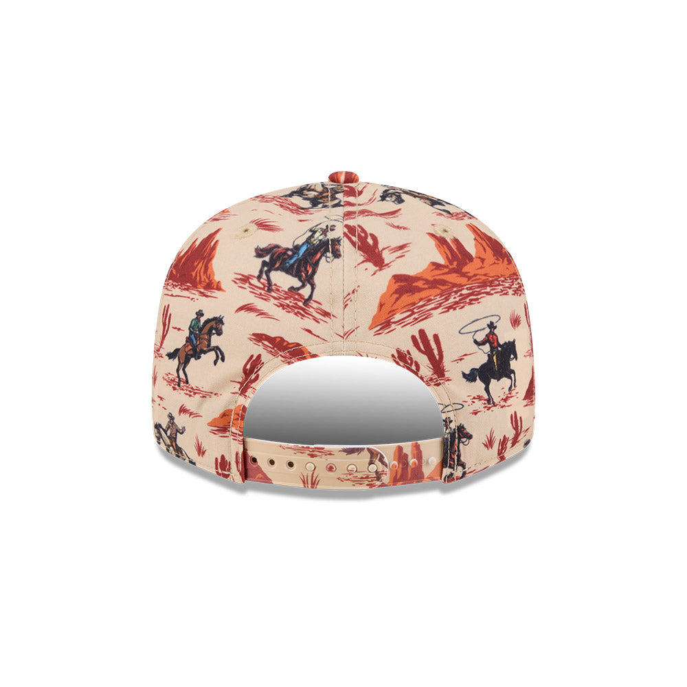 Celebrate Cubs baseball with this distinctive New Era 9FIFTY snapback, featuring a bold cowboy print that blends spring training spirit with Western flair. The classic 9FIFTY silhouette delivers a structured fit and timeless style, while the adjustable snapback closure ensures comfort for all head sizes. Perfect for fans who want to stand out at the ballpark or around town. Made with New Era's quality construction for durability through countless games and seasons.