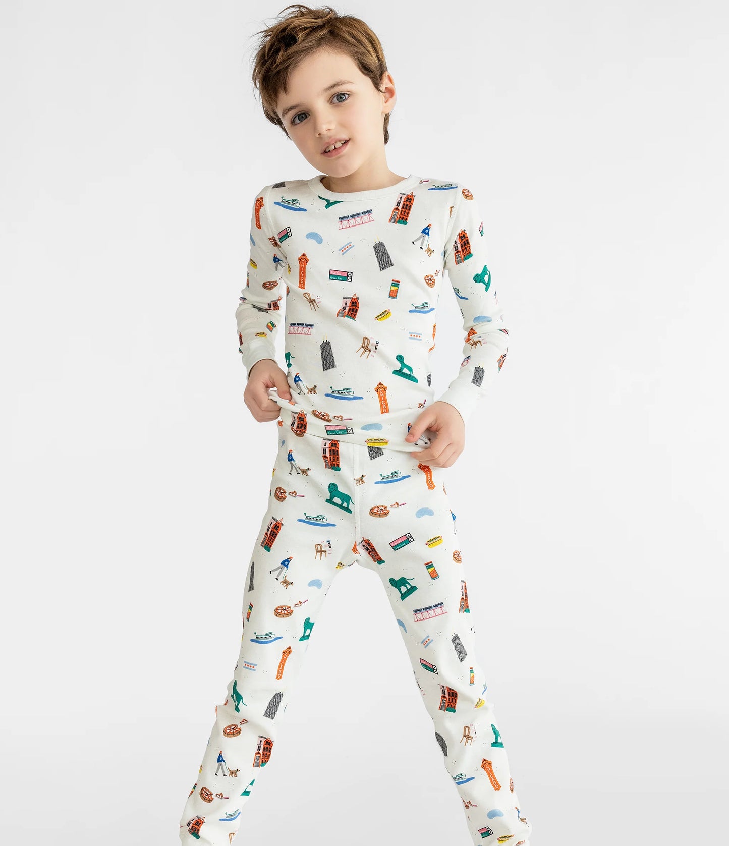 Sleep soundly and show off your love for the Windy City with our Chicago Goodnight Kid's Long John Pajamas! Featuring iconic Chicago symbols like the bean, John Hancock building, CTA train, hot-dog, deep dish pizza, and the Chicago flag, these pajamas are the perfect way to represent your city while getting a good night's rest. Get yours today!