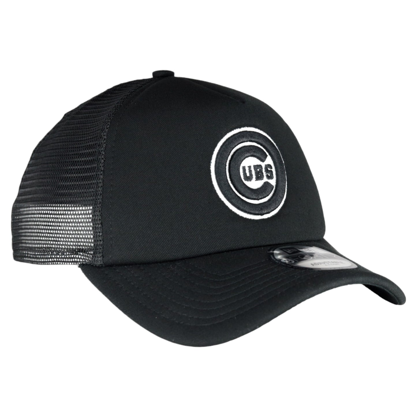 Chicago Cubs New Era 9FORTY A-Frame Foam Front Bullseye Black Trucker Hat