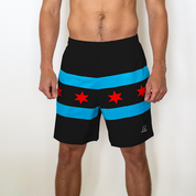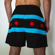 These black Chicago flag shorts are the perfect addition to your wardrobe! Sport these lightweight, sweat wicking shorts during your next race, beach volleyball game or at the pool. Chicago summer will never be the same.