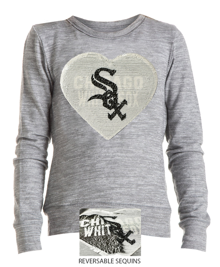 Chicago White Sox Youth Grey Space Dye Knit Pullover w/ Current Logo Sequin Art