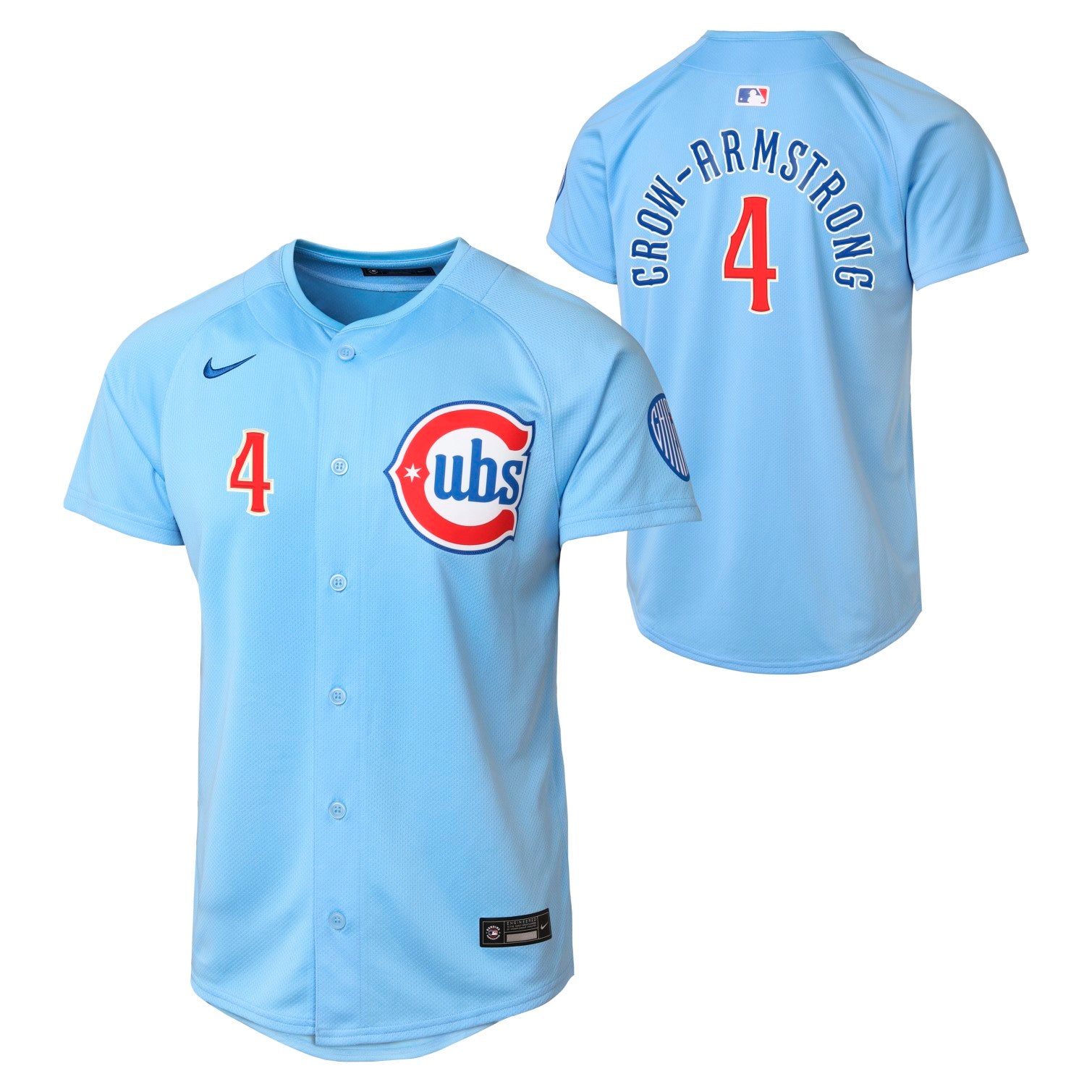 Show your support for Pete Crow-Armstrong with the Chicago Cubs Nike Youth Alt Blues Jersey. Designed for young fans, this authentic jersey blends team pride with Nike’s quality craftsmanship for durability and comfort. Its vibrant alt blues color and official Cubs branding make it perfect for game days or casual wear, ensuring your child stands out in true team spirit.